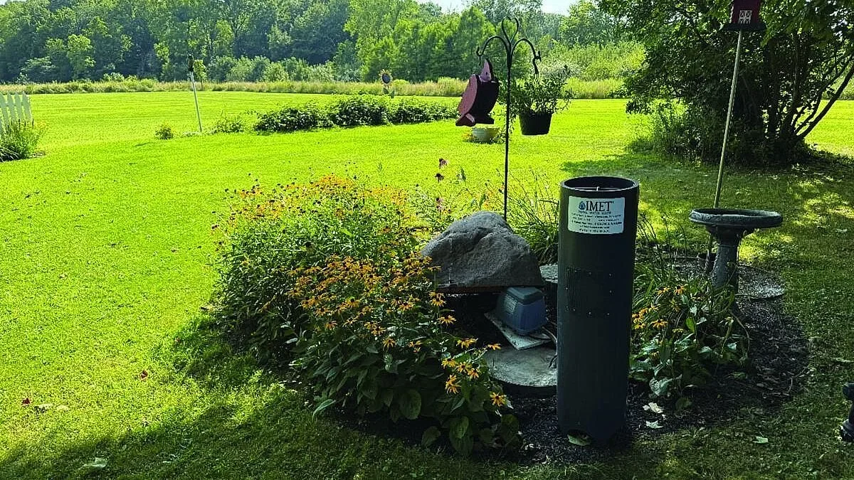 Midwest homeowners of 35 years had a septic system with ongoing odor and performance issues. The system discharged into a filter bed and then into an 80-foot swale, where foul hydrogen sulfide odors were noticeable, sometimes even by neighbors. Black, slimy biomat frequently discharged from the filter bed, and plugging in the filter bed led to ponding in the yard. These issues made mowing difficult and left portions of the yard inaccessible at times.